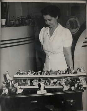 Frances, a friend of Agnes, who had just gotten married and was headed to California came into the beauty shop a few days later to have her hair fixed as Agnes said. In the front window of Agnes Beauty Shop at 9888 Atwater in Portland, was Agnes’ cat collection. She had over 100 porcelain and glass cats that people had given her over the years. She numbered them and wrote down who they were all from in a small leather book. Frances had forgotten the cat she had for Agnes’ collection and was very upset about it. Since she was heading out of town, she arranged to leave the cat at the home where she was staying and the man there would get it to her.