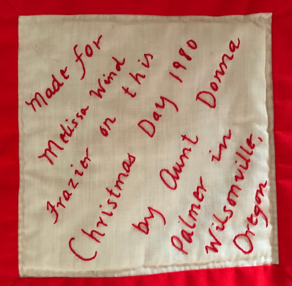 Not always understood, well opinionated, my Aunt Donna walked her own walk. She is someone who influenced my life in many, many more ways than I even know. But, when I stop to think about it and look at the quilt she made me for Christmas in 1980, when I was eight years old, she foresaw my life. The quilt is covered with children, geese, bunnies, and flowers. It is made perfectly to my eye and doesn’t have a stitch out of place. I used on my bed for many years when I was little and last year declared it as our Christmas quilt.